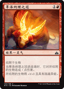 | Rules | Enchant creature When Tilonalli's Crown enters the battlefield, it deals 1 damage to enchanted creature. Enchanted creature gets +3/+0 and has trample. |