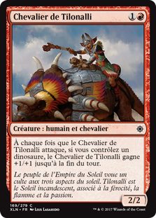 | Rules | Whenever Tilonalli's Knight attacks, if you control a Dinosaur, Tilonalli's Knight gets +1/+1 until end of turn. |