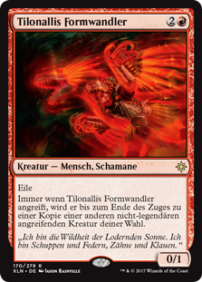 | Rules | Haste Whenever Tilonalli's Skinshifter attacks, it becomes a copy of another target nonlegendary attacking creature until end of turn. |