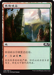 | Rules | Timber Gorge enters the battlefield tapped. : Add or . |