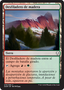 | Rules | Timber Gorge enters the battlefield tapped. : Add or . |