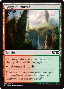 | Rules | Timber Gorge enters the battlefield tapped. : Add or . |