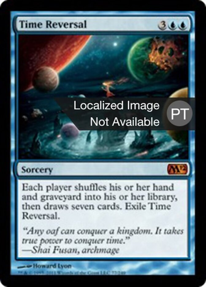 | Rules | Each player shuffles their hand and graveyard into their library, then draws seven cards. Exile Time Reversal. |