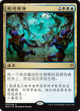 | Rules | Return a creature you control to its owner's hand, then destroy all creatures. |