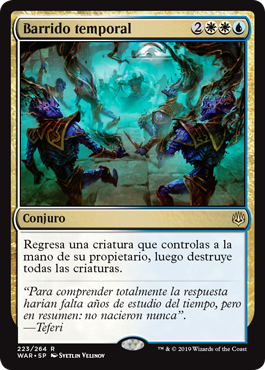 | Rules | Return a creature you control to its owner's hand, then destroy all creatures. |