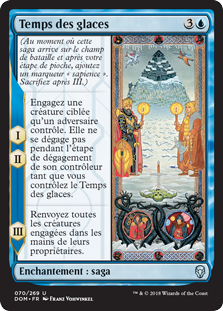 | Rules | (As this Saga enters and after your draw step, add a lore counter. Sacrifice after III.) I, II — Tap target creature an opponent controls. It doesn't untap during its controller's untap step for as long as you control Time of Ice. III — Return all tapped creatures to their owners' hands. |