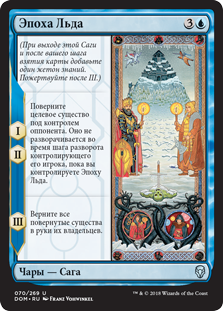 | Rules | (As this Saga enters and after your draw step, add a lore counter. Sacrifice after III.) I, II — Tap target creature an opponent controls. It doesn't untap during its controller's untap step for as long as you control Time of Ice. III — Return all tapped creatures to their owners' hands. |