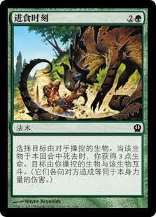 | Rules | Choose target creature an opponent controls. When that creature dies this turn, you gain 3 life. Target creature you control fights that creature. (Each deals damage equal to its power to the other.) |