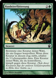 | Rules | Choose target creature an opponent controls. When that creature dies this turn, you gain 3 life. Target creature you control fights that creature. (Each deals damage equal to its power to the other.) |