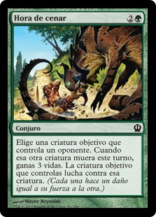 | Rules | Choose target creature an opponent controls. When that creature dies this turn, you gain 3 life. Target creature you control fights that creature. (Each deals damage equal to its power to the other.) |