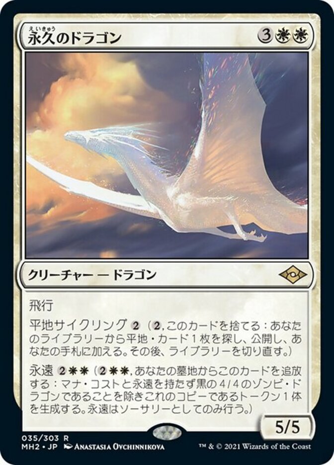 | Rules | Flying Plainscycling (, Discard this card: Search your library for a Plains card, reveal it, put it into your hand, then shuffle.) Eternalize (, Exile this card from your graveyard: Create a token that's a copy of it, except it's a 4/4 black Zombie Dragon with no mana cost. Eternalize only as a sorcery.) |