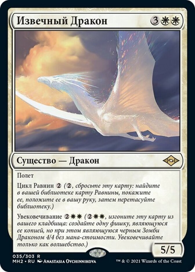 | Rules | Flying Plainscycling (, Discard this card: Search your library for a Plains card, reveal it, put it into your hand, then shuffle.) Eternalize (, Exile this card from your graveyard: Create a token that's a copy of it, except it's a 4/4 black Zombie Dragon with no mana cost. Eternalize only as a sorcery.) |