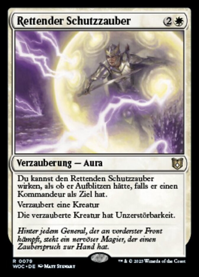 | Rules | You may cast this spell as though it had flash if it targets a commander. Enchant creature Enchanted creature has indestructible. |