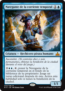 | Rules | Ascend (If you control ten or more permanents, you get the city's blessing for the rest of the game.) , , Put Timestream Navigator on the bottom of its owner's library: Take an extra turn after this one. Activate only if you have the city's blessing. |
