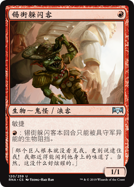 | Rules | Haste : Tin Street Dodger can't be blocked this turn except by creatures with defender. |