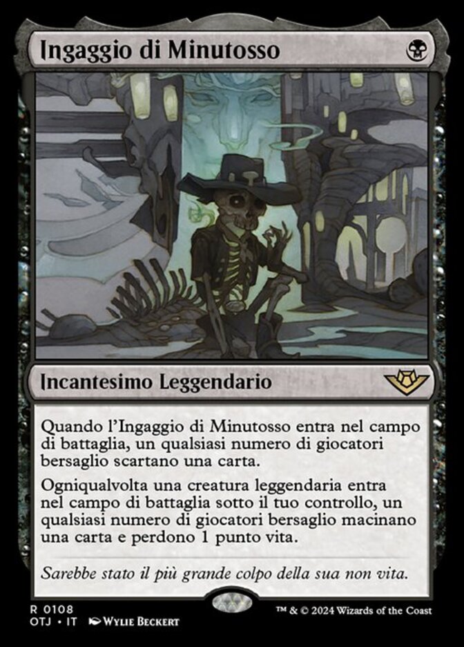 | Rules | When Tinybones Joins Up enters the battlefield, any number of target players each discard a card. Whenever a legendary creature enters the battlefield under your control, any number of target players each mill a card and lose 1 life. |