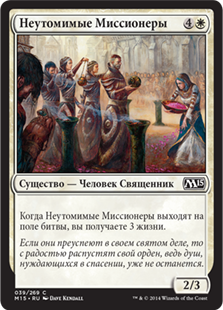 | Rules | When Tireless Missionaries enters the battlefield, you gain 3 life. |