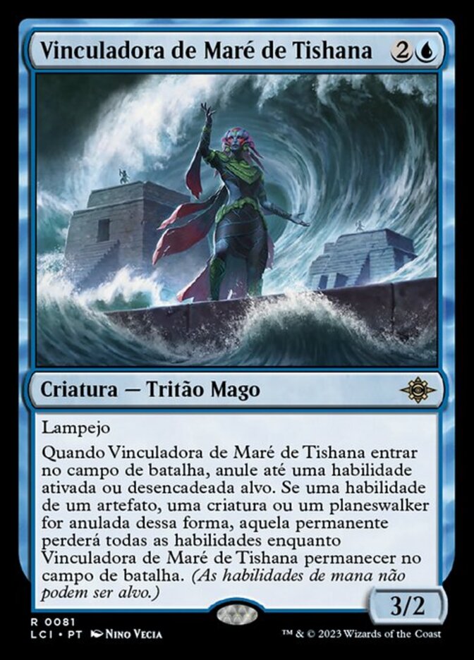 | Rules | Flash When Tishana's Tidebinder enters the battlefield, counter up to one target activated or triggered ability. If an ability of an artifact, creature, or planeswalker is countered this way, that permanent loses all abilities for as long as Tishana's Tidebinder remains on the battlefield. (Mana abilities can't be targeted.) |