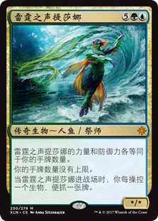 | Rules | Tishana, Voice of Thunder's power and toughness are each equal to the number of cards in your hand. You have no maximum hand size. When Tishana enters the battlefield, draw a card for each creature you control. |