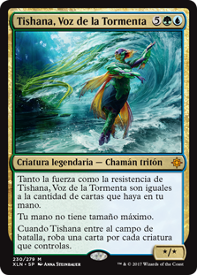 | Rules | Tishana, Voice of Thunder's power and toughness are each equal to the number of cards in your hand. You have no maximum hand size. When Tishana enters the battlefield, draw a card for each creature you control. |