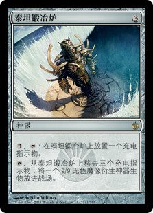| Rules | , : Put a charge counter on Titan Forge. , Remove three charge counters from Titan Forge: Create a 9/9 colorless Golem artifact creature token. |