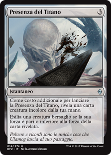 | Rules | As an additional cost to cast this spell, reveal a colorless creature card from your hand. Exile target creature if its power is less than or equal to the revealed card's power. |
