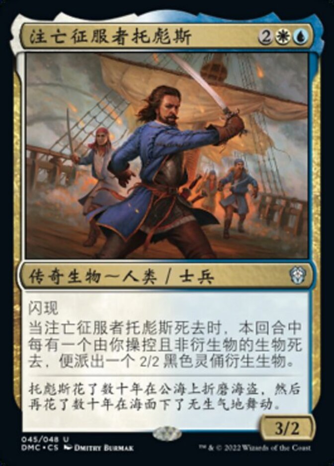 | Rules | Flash When Tobias, Doomed Conqueror dies, create a 2/2 black Zombie creature token for each nontoken creature that died under your control this turn. |