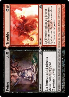 | Rules | Target player draws two cards and loses 2 life. Fuse (You may cast one or both halves of this card from your hand.) // Trouble deals damage to target player equal to the number of cards in that player's hand. Fuse (You may cast one or both halves of this card from your hand.) |