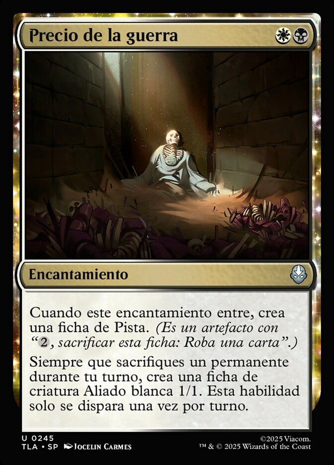| Rules | When this enchantment enters, create a Clue token. (It's an artifact with ", Sacrifice this token: Draw a card.") Whenever you sacrifice a permanent during your turn, create a 1/1 white Ally creature token. This ability triggers only once each turn. |
