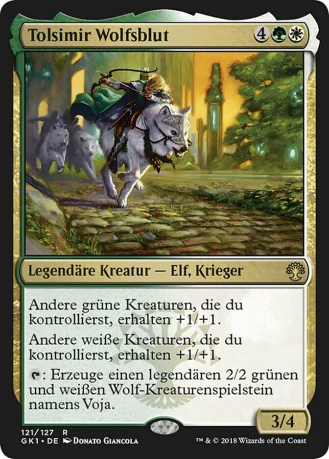 | Rules | Other green creatures you control get +1/+1. Other white creatures you control get +1/+1. : Create Voja, a legendary 2/2 green and white Wolf creature token. |