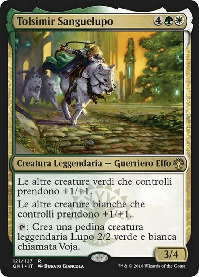 | Rules | Other green creatures you control get +1/+1. Other white creatures you control get +1/+1. : Create Voja, a legendary 2/2 green and white Wolf creature token. |