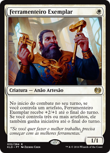 | Rules | At the beginning of combat on your turn, if you control an artifact, Toolcraft Exemplar gets +2/+1 until end of turn. If you control three or more artifacts, it also gains first strike until end of turn. |