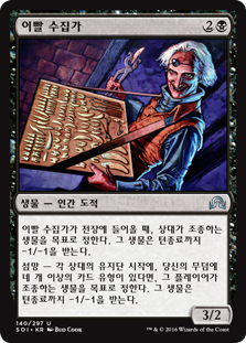 | Rules | When Tooth Collector enters the battlefield, target creature an opponent controls gets -1/-1 until end of turn. Delirium — At the beginning of each opponent's upkeep, if there are four or more card types among cards in your graveyard, target creature that player controls gets -1/-1 until end of turn. |