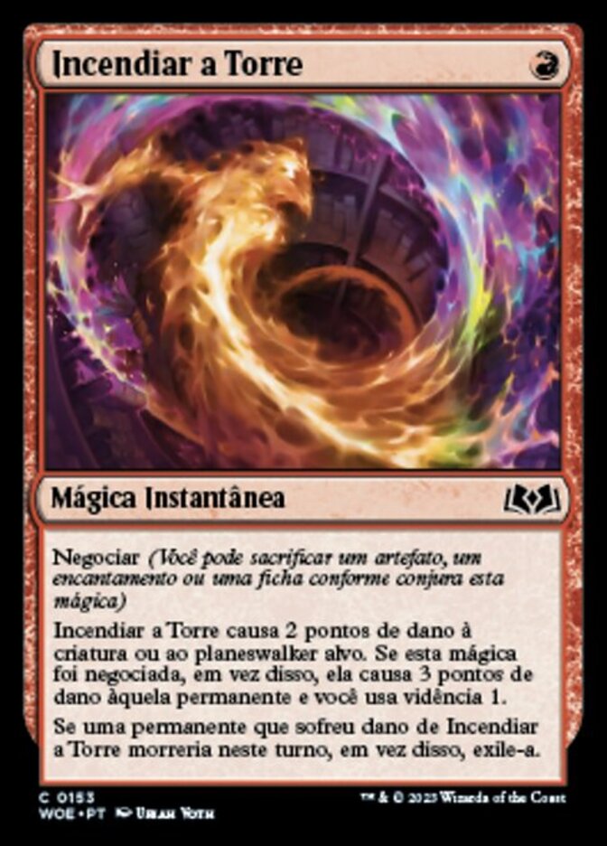 | Rules | Bargain (You may sacrifice an artifact, enchantment, or token as you cast this spell.) Torch the Tower deals 2 damage to target creature or planeswalker. If this spell was bargained, instead it deals 3 damage to that permanent and you scry 1. If a permanent dealt damage by Torch the Tower would die this turn, exile it instead. |
