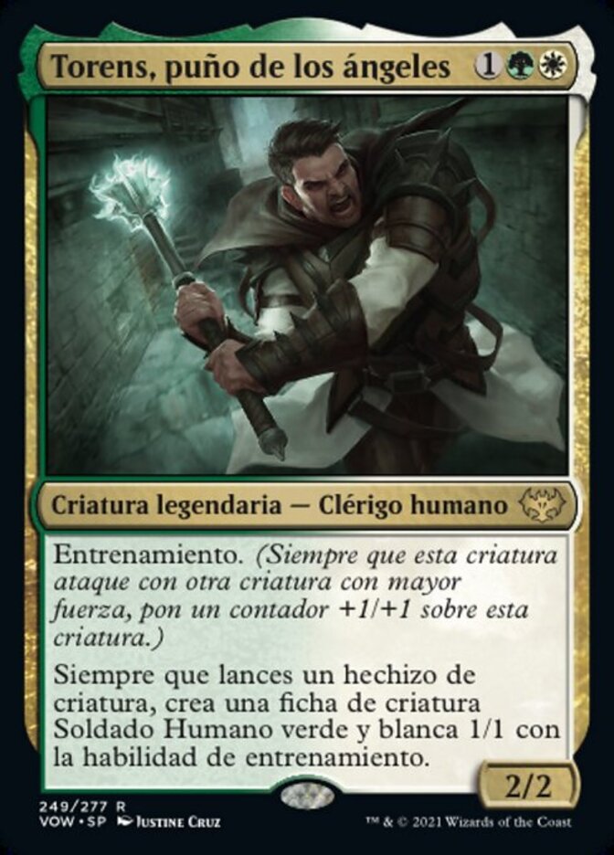 | Rules | Training (Whenever this creature attacks with another creature with greater power, put a +1/+1 counter on this creature.) Whenever you cast a creature spell, create a 1/1 green and white Human Soldier creature token with training. |