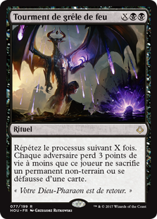 | Rules | Repeat the following process X times. Each opponent loses 3 life unless that player sacrifices a nonland permanent or discards a card. |