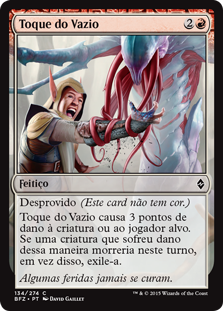 | Rules | Devoid (This card has no color.) Touch of the Void deals 3 damage to any target. If a creature dealt damage this way would die this turn, exile it instead. |