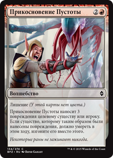 | Rules | Devoid (This card has no color.) Touch of the Void deals 3 damage to any target. If a creature dealt damage this way would die this turn, exile it instead. |