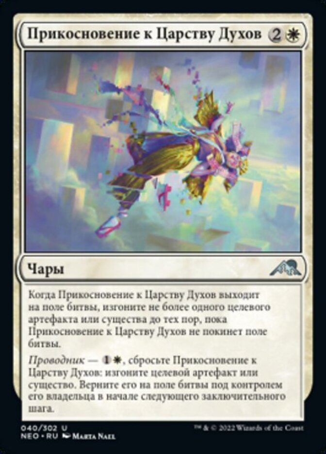 | Rules | When Touch the Spirit Realm enters the battlefield, exile up to one target artifact or creature until Touch the Spirit Realm leaves the battlefield. Channel — , Discard Touch the Spirit Realm: Exile target artifact or creature. Return it to the battlefield under its owner's control at the beginning of the next end step. |