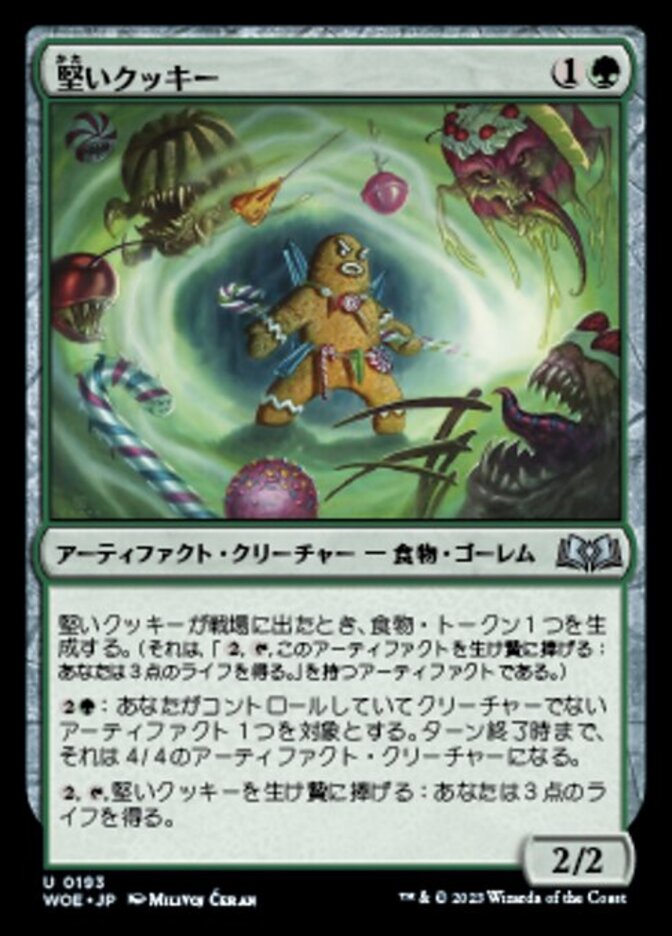 | Rules | When Tough Cookie enters the battlefield, create a Food token. (It's an artifact with ", , Sacrifice this artifact: You gain 3 life.") : Target noncreature artifact you control becomes a 4/4 artifact creature until end of turn. , , Sacrifice Tough Cookie: You gain 3 life. |