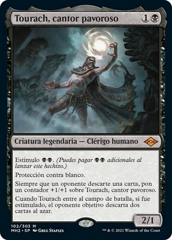 | Rules | Kicker (You may pay an additional as you cast this spell.) Protection from white Whenever an opponent discards a card, put a +1/+1 counter on Tourach, Dread Cantor. When Tourach enters the battlefield, if it was kicked, target opponent discards two cards at random. |