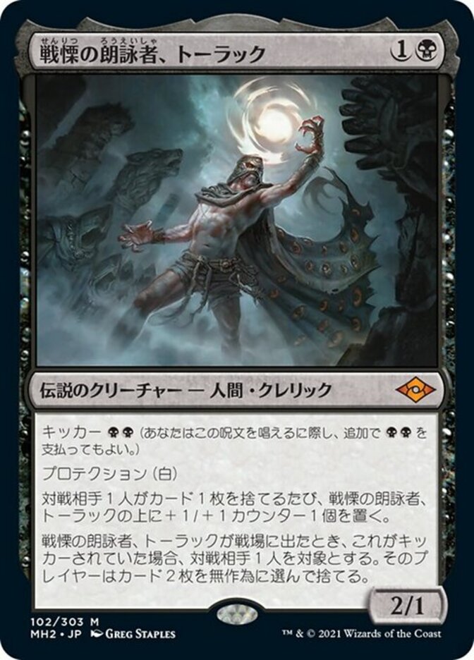 | Rules | Kicker (You may pay an additional as you cast this spell.) Protection from white Whenever an opponent discards a card, put a +1/+1 counter on Tourach, Dread Cantor. When Tourach enters the battlefield, if it was kicked, target opponent discards two cards at random. |