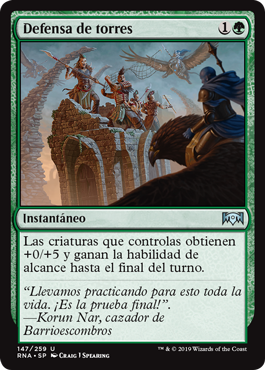 | Rules | Creatures you control get +0/+5 and gain reach until end of turn. |