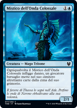 | Rules | Whenever Towering-Wave Mystic deals damage, target player mills that many cards. |