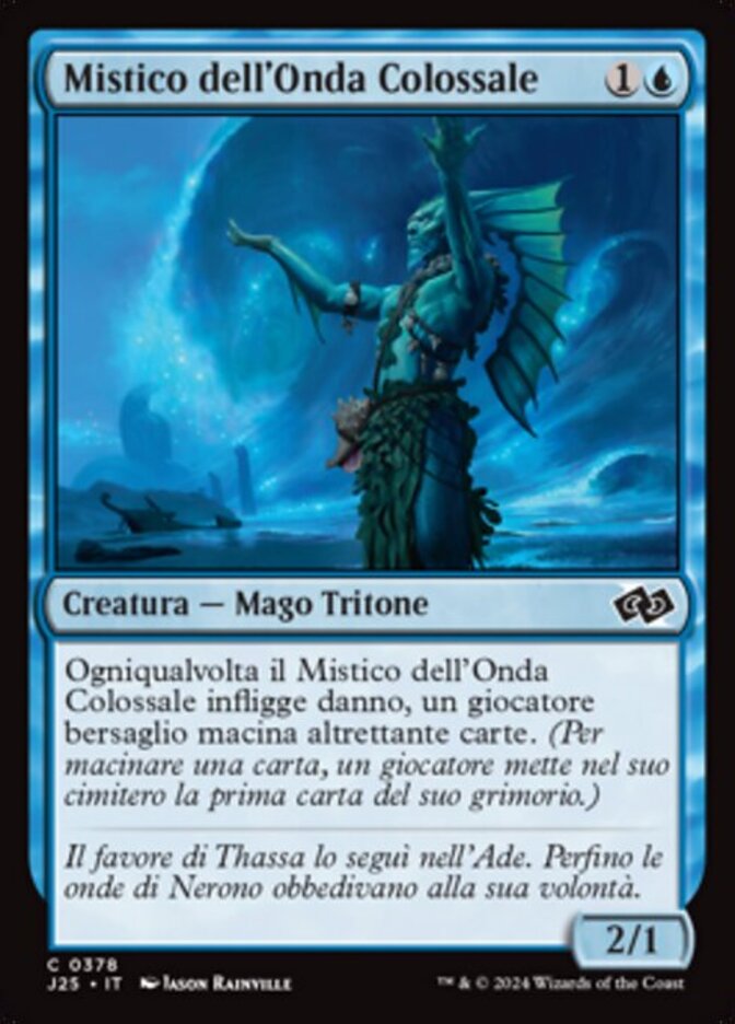 | Rules | Whenever Towering-Wave Mystic deals damage, target player mills that many cards. |