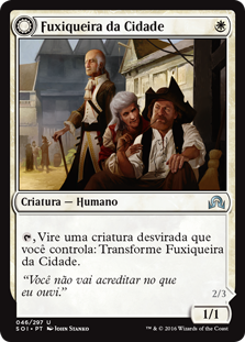 Rules , Tap an untapped creature you control: Transform Town Gossipmonger.
