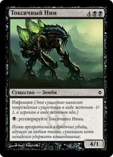 | Rules | Infect (This creature deals damage to creatures in the form of -1/-1 counters and to players in the form of poison counters.) : Regenerate Toxic Nim. |