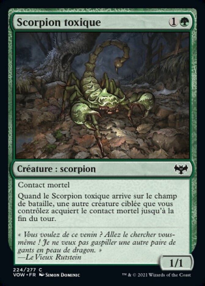 | Rules | Deathtouch When Toxic Scorpion enters the battlefield, another target creature you control gains deathtouch until end of turn. |