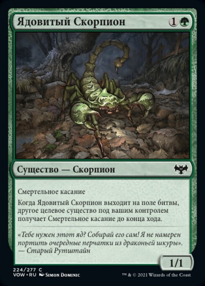 | Rules | Deathtouch When Toxic Scorpion enters the battlefield, another target creature you control gains deathtouch until end of turn. |