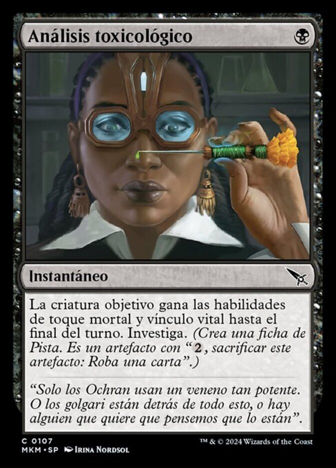 | Rules | Target creature gains deathtouch and lifelink until end of turn. Investigate. (Create a Clue token. It's an artifact with ", Sacrifice this artifact: Draw a card.") |